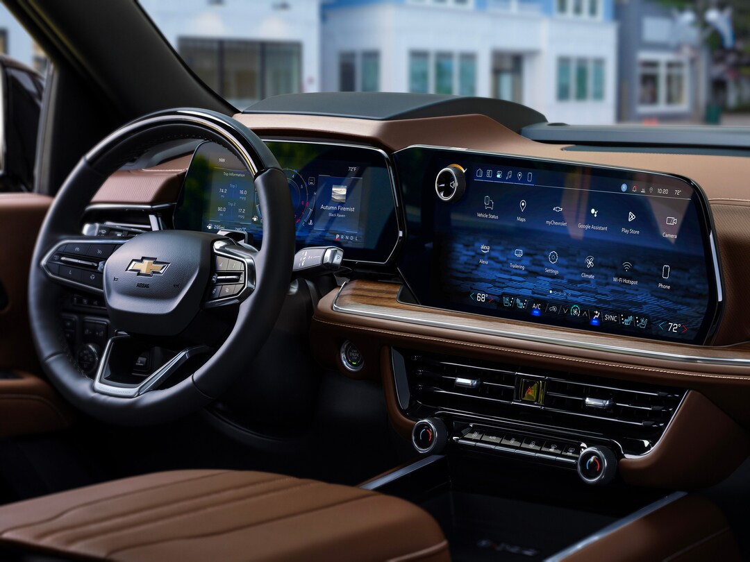 Technology is central in the 2026 Suburban, featuring a standard 17.7-inch color display with Google built-in. It offers navigation, connected apps, driver profiles, and Natural Voice Recognition along with wireless Apple CarPlay and Android Auto. The OnStar system includes emergency services, remote commands, and Wi-Fi hotspot. With higher trims, you'll find a 15-inch Head-Up Display, Rear Camera Mirror, and Super Cruise hands-free system, plus other features like a Bose 10-speaker system with CenterPoint, Rear Seat Media, and SiriusXM trial.