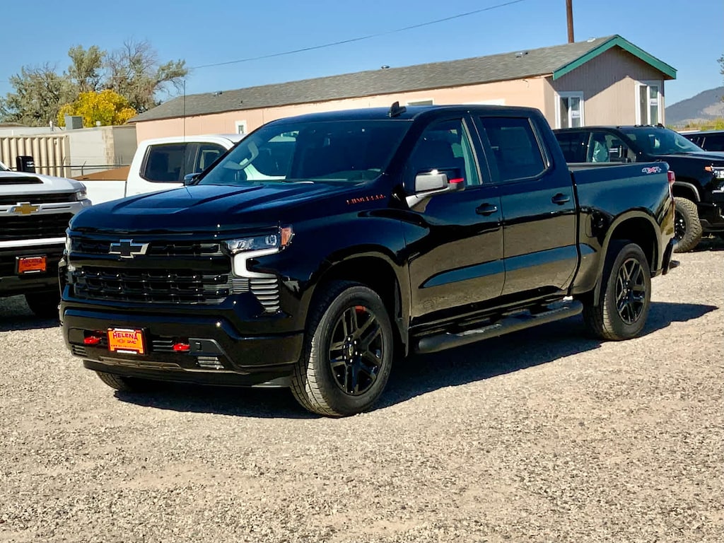 includes high gloss Black door handles, high gloss Black grille, Black tailgate lettering, headlamp dark bezel, Black with Red outline Silverado emblems for fenders and tailgate, Black RST badge on tailgate, Red stripes on outside rearview mirrors, Black rectangular dual exhaust tips, (UGA) Red recovery hooks, (RPS) 20" High gloss Black painted aluminum wheels with Red stripes, (WPQ) Protection Package and (RVS) Black assist steps, LPO When ordered with (L87) 6.2L EcoTec3 V8 engine or (LZ0) Duramax 3.0L Turbo-Diesel I6 engine includes Black hood badging. (355 hp [265 kW] @ 5600 rpm, 383 lb-ft of torque [518 Nm] @ 4100 rpm); featuring available Dynamic Fuel Management that enables the engine to operate in 17 different patterns between 2 and 8 cylinders, depending on demand, to optimize power delivery and efficiency, includes (B1J) wheel house liners and (CGN) Chevytec spray-on bedliner, 1st and 2nd rows on Crew Cab and Double Cab, (includes Chevrolet Bowtie logo), with Google built-in compatibility (select service plan required, terms and limitations apply) including navigation capability, 13.4" diagonal HD color touchscreen, includes multi-touch display, AM/FM stereo, Bluetooth® streaming audio for music and most phones; featuring Wireless Apple CarPlay® and Wireless Android Auto® capability for compatible phones, advanced voice recognition, in-vehicle apps, personalized profiles for infotainment and vehicle settings (STD), with overdrive and tow/haul mode. Includes Cruise Grade Braking and Powertrain Grade Braking. Chevrolet RST with Black exterior and Jet Black interior features a 8 Cylinder Engine with 310 HP at 5600 RPM*.