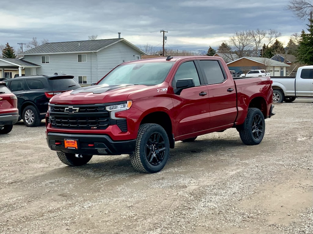 (355 hp [265 kW] @ 5600 rpm, 383 lb-ft of torque [518 Nm] @ 4100 rpm); featuring available Dynamic Fuel Management that enables the engine to operate in 17 different patterns between 2 and 8 cylinders, depending on demand, to optimize power delivery and efficiency (Includes (N10) dual exhaust.), includes (UG1) Universal Home Remote, (A48) rear sliding power window, (PZ8) Hitch Guidance with Hitch View and (UET) Trailering App Includes (UQA) Bose Premium Sound System. with center console (Includes (EPH) Electronic Transmission Range Selector (console mounted). with Google built-in compatibility (select service plan required, terms and limitations apply) including navigation capability, 13.4" diagonal HD color touchscreen, includes multi-touch display, AM/FM stereo, Bluetooth® streaming audio for music and most phones; featuring Wireless Apple CarPlay® and Wireless Android Auto® capability for compatible phones, advanced voice recognition, in-vehicle apps, personalized profiles for infotainment and vehicle settings (STD), with Electronic Transmission Range Selector, (ETRS), electronically controlled with overdrive, tow/haul mode and steering column paddle shifters. Includes Cruise Grade Braking and Powertrain Grade Braking, 60/40 folding bench for Crew Cab models, includes full-length bench seat, seatback storage on left and right side, center fold out armrest with 2 cupholders, full cab width under-seat storage, (includes child seat top tether anchor). Chevrolet LT Trail Boss with Radiant Red Tintcoat exterior and Jet Black interior features a 8 Cylinder Engine with 310 HP at 5600 RPM*.