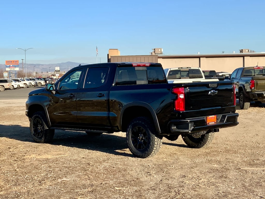 (dealer-installed), on Crew Cab models, includes Black badging/decals and exhaust tips. Includes (V76) Black Tow Hooks, and (RQL) 18" Gloss Black Wheels. Exhaust ends high under rear bumper with no exposed exhaust tips.), with Google built-in compatibility (select service plan required, terms and limitations apply) including navigation capability, 13.4" diagonal HD color touchscreen, includes multi-touch display, AM/FM stereo, Bluetooth® streaming audio for music and most phones; featuring Wireless Apple CarPlay® and Wireless Android Auto® capability for compatible phones, advanced voice recognition, in-vehicle apps, personalized profiles for infotainment and vehicle settings (STD), (305 hp [227 kW] @ 3750 rpm, 495 lb-ft of torque [671 Nm] @ 2750 rpm) (STD) (Includes (KW5) 220-amp alternator and (K05) engine block heater.), with Electronic Transmission Range Selector (ETRS), electronically controlled with overdrive, tow/haul mode and steering column paddle shifters. Includes Cruise Grade Braking and Powertrain Grade Braking (STD). Chevrolet ZR2 with Black exterior and Jet Black/Graystone interior features a Straight 6 Cylinder Engine with 305 HP at 3750 RPM*.