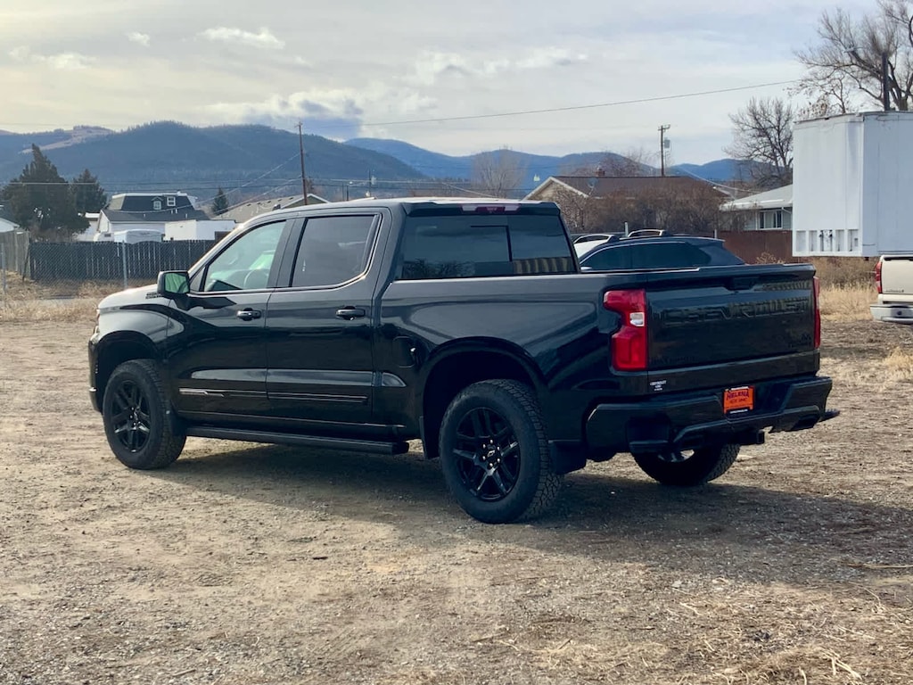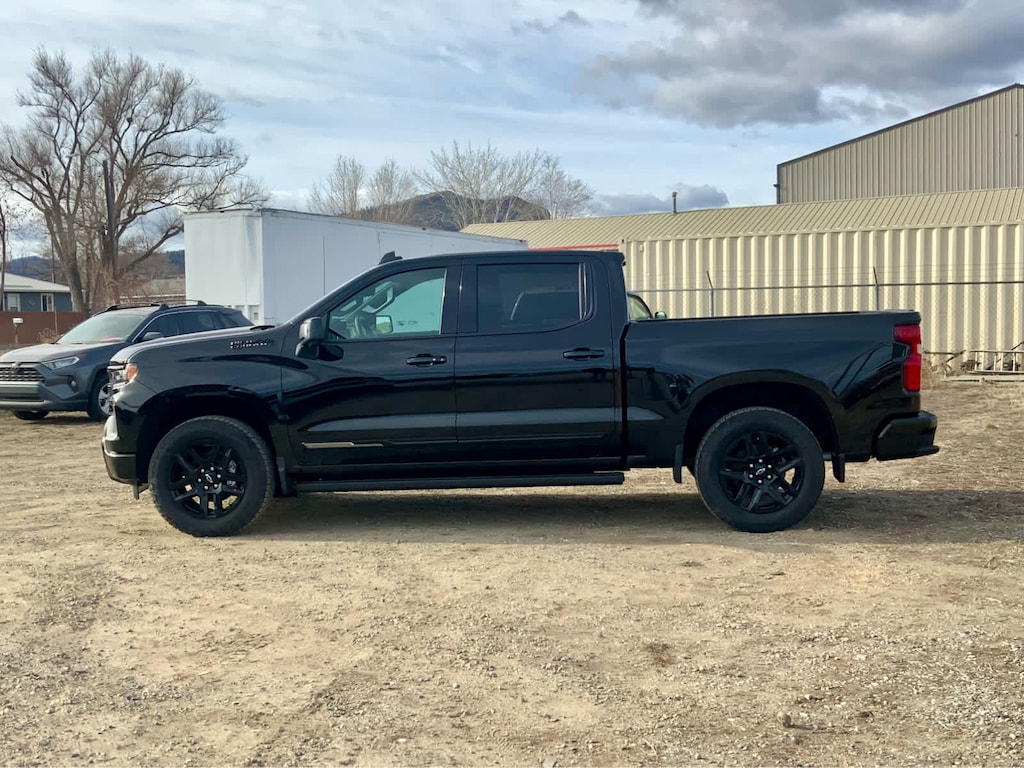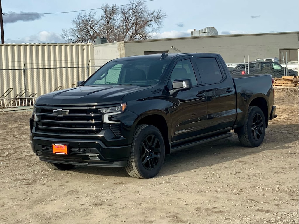 advanced driver assistance technology, for use on compatible roads. Includes 3 years of OnStar One with Super Cruise upgrade, (420 hp [313 kW] @ 5600 rpm, 460 lb-ft of torque [624 Nm] @ 4100 rpm); featuring Dynamic Fuel Management that enables the engine to operate in 17 different patterns between 2 and 8 cylinders, depending on demand, to optimize power delivery and efficiency, includes Black Silverado badging, Black trim level badging, (V76) Black recovery hooks and Black dual exhaust tips Includes dark headlamp bezel. Includes Black bowties (steering wheel horn pad and front grille), hood badging, grille, lower skid plate, exhaust tips, mirror caps, door handles, body side moldings, and DLO moldings. Includes (RD5) 20" High gloss Black painted aluminum wheels and (QAE) 275/60R20 all-terrain tires. Includes (B3L) Black Power Assist Steps. includes (DRZ) Rear Camera Mirror and (UV6) 15" Diagonal Head-Up Display, on Crew Cab models, 1st and 2nd rows on Crew Cab and Double Cab, (includes Chevrolet Bowtie logo), with Google built-in compatibility (select service plan required, terms and limitations apply) including navigation capability, 13.4" diagonal HD color touchscreen, includes multi-touch display, AM/FM stereo, Bluetooth® streaming audio for music and most phones; featuring Wireless Apple CarPlay® and Wireless Android Auto® capability for compatible phones, advanced voice recognition, in-vehicle apps, personalized profiles for infotainment and vehicle settings (STD), with Electronic Transmission Range Selector, (ETRS), electronically controlled with overdrive, tow/haul mode and steering column paddle shifters. Includes Cruise Grade Braking and Powertrain Grade Braking (STD). Chevrolet High Country with Black exterior and Jet Black interior features a 8 Cylinder Engine with 420 HP at 5600 RPM*.