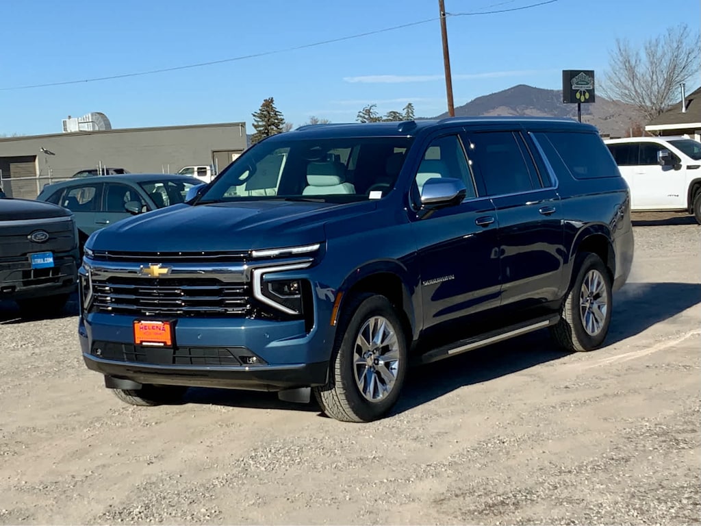 includes (C3U) power sunroof and (NHT) Max Trailering Package, includes (AAK) 1st and 2nd row premium floor liners, LPO, (RIB) 3rd row all-weather floor liner, LPO and (CAV) all-weather cargo mat, LPO (dealer-installed), electronically controlled with overdrive, includes Traction Select System including tow/haul (STD), with Google built-in compatibility (select service plan required, terms and limitations apply), including navigation capability, connected apps, personalized profiles for each driver's settings, Natural Voice Recognition and Phone Integration (STD), includes (UKW) Blind Zone Steering Assist with Trailering, (PZ8) Hitch View and (UET) Smart Trailer Integration Indicator. Chevrolet Premier with Lakeshore Blue Metallic exterior and Jet Black/Sky Cool Gray interior features a 8 Cylinder Engine with 355 HP at 5600 RPM*. Approx. Original Base Sticker Price: $87,100*.