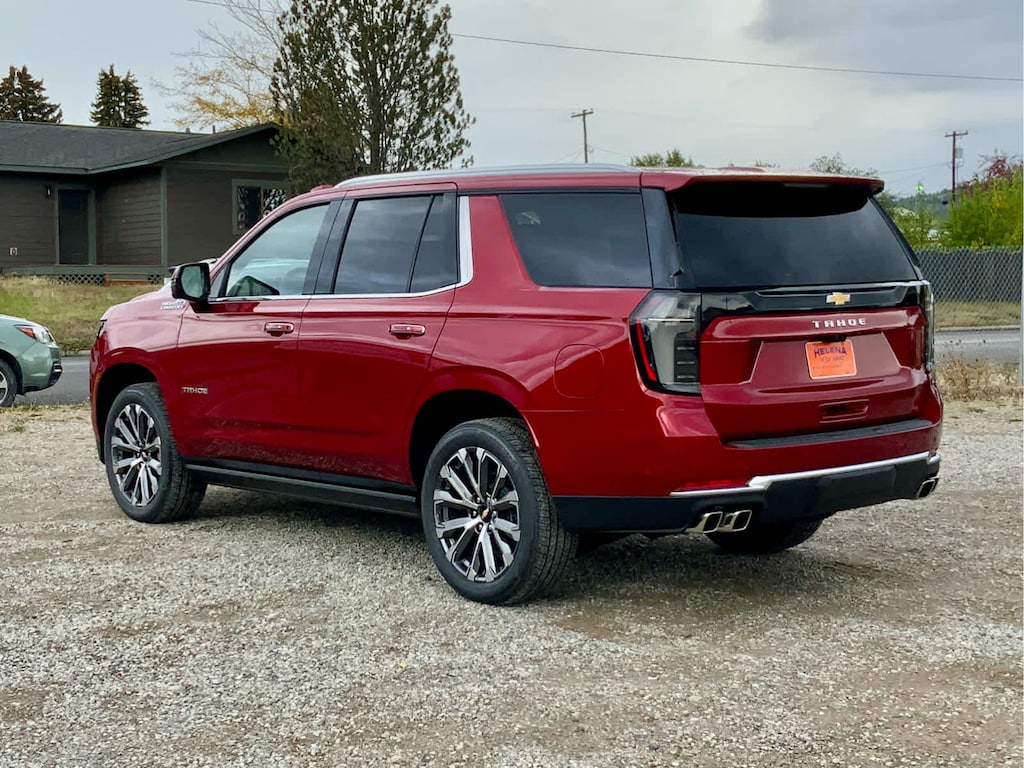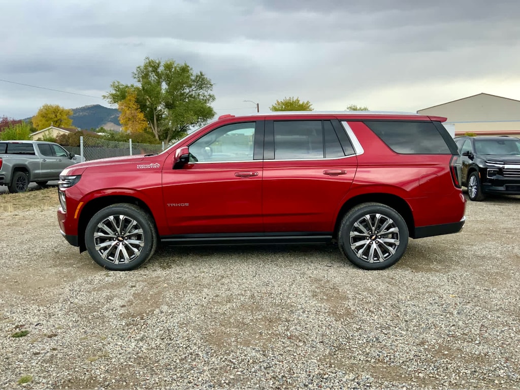 includes (C3U) Panoramic power sunroof, (B3L) power-retractable assist steps with perimeter lighting, (F47) Air Ride Adaptive suspension and (NHT) Max Trailering Package, Includes (NWM) Advanced Security Package content and (TCP) AutoSense power liftgate.), SUSPENSION, AIR RIDE ADAPTIVE, with Dynamic Fuel Management, Direct Injection and Variable Valve Timing, includes aluminum block construction (420 hp [313 kW] @ 5600 rpm, 460 lb-ft of torque [624 Nm] @ 4100 rpm) (STD), electronically controlled with overdrive, includes Traction Select System including tow/haul (STD), includes (UTR) self-powered horn, (UTV) interior movement sensors, (UTU) vehicle inclination sensors, (UTW) glass break sensors in rear quarter glass and liftgate window and door and liftgate lock shields, a hands-free driver assistance feature for use on compatible roads, includes automatic lane changing and trailering capability, with Google built-in compatibility (select service plan required, terms and limitations apply), including navigation capability, connected apps, personalized profiles for each driver's settings, Natural Voice Recognition and Phone Integration (STD), includes (UKW) Blind Zone Steering Assist with Trailering, (PZ8) Hitch View and (UET) Smart Trailer Integration Indicator. Chevrolet High Country with Radiant Red Tintcoat exterior and Jet Black/Mocha interior features a 8 Cylinder Engine with 420 HP at 5600 RPM*.