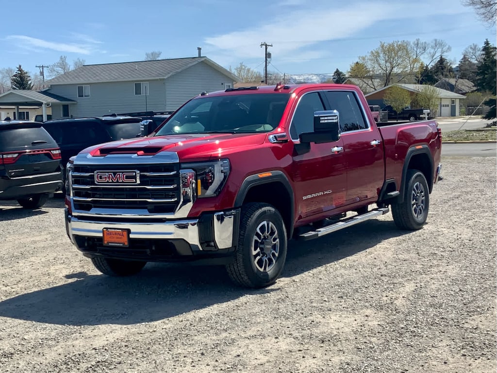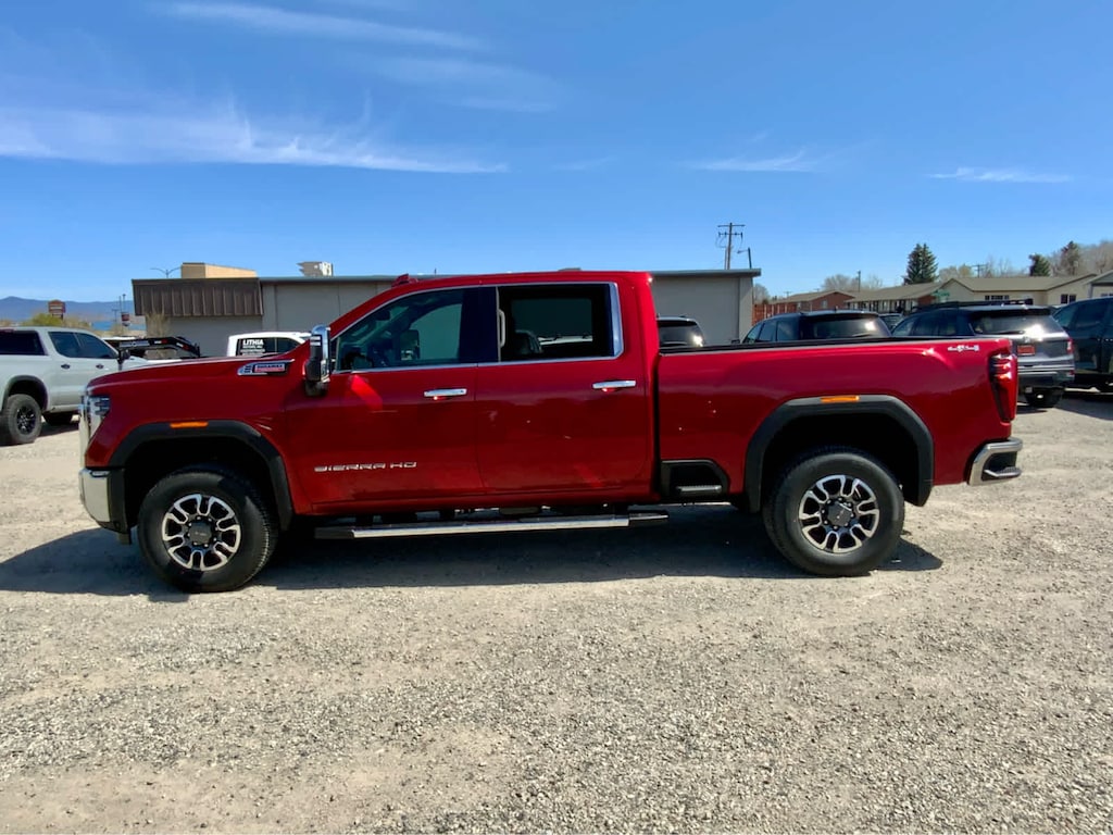 (470 hp [350.5 kW] @ 2800 rpm, 975 lb-ft of torque [1322 Nm] @ 1600 rpm) (Includes (K05) engine block heater.), includes (A50) bucket seats with (D07) center console, (KQV) ventilated front seats, (UBC) 2 USB Charge/Data ports first row inside center console, (U01) Roof Marker Lamps, (K4C) Wireless Charging and (UQA) Bose Premium Audio System, includes (RIA) All-weather floor liner, LPO and choice of assist step (VXH) 6" Chrome rectangular tubular assist step, LPO or (VXJ) 4" Chrome round tubular assist step, LPO on SLE, with six functional load/access features NOTE: Auto release can be disabled if ball hitch is installed. See Owner's manual for details, includes color touch-screen, multi-touch display, AM/FM stereo, Bluetooth® streaming audio for music and most phones; featuring wireless Android Auto® and Apple CarPlay® capability for compatible phones (STD), TRANSMISSION, 10-SPEED AUTOMATIC. GMC SLT with Volcanic Red Tintcoat exterior and Jet Black interior features a 8 Cylinder Engine with 470 HP at 2800 RPM*.