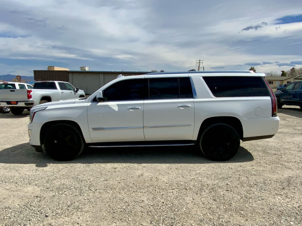 includes two 9" screen DVD player (Blu-Ray capable) with remote control, four 2-channel wireless digital headphones, auxiliary audio/video jacks on rear of center console, sound compression, CD-R and CR-R/W capability, LED backlighting display, MP3 capable, HDMI/HML input, 2nd USB port with 2.1 amp charging and Wi-Fi capability via Digital Living Network Alliance (DLNA), AM/FM stereo with 8" diagonal color information display featuring touch response, haptic feedback, gesture recognition, Natural Voice Recognition, Phone Integration for Apple CarPlay® and Android Auto® capability for compatible phone, Connected Apps and Teen Driver. Five USB ports, including one in the articulating storage door/bin and auxiliary audio port (STD), Spark Ignition Direct Injection (SIDI) and Variable Valve Timing (VVT), includes aluminum block construction (420 hp [313.2 kW] @ 5600 rpm, 460 lb-ft of torque [621 N-m] @ 4100 rpm) (STD), electronically controlled with overdrive, tow/haul mode and tap up/tap down shifting (STD). Cadillac Luxury with Crystal White Tricoat exterior and Jet Black interior features a 8 Cylinder Engine with 420 HP at 5600 RPM*.