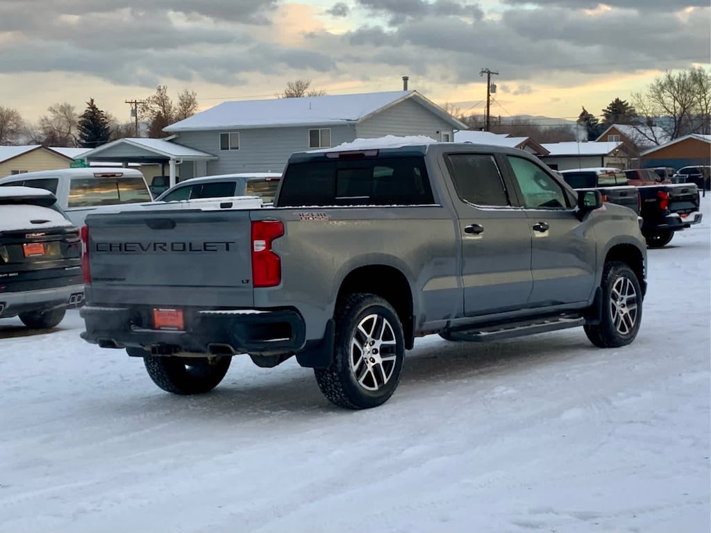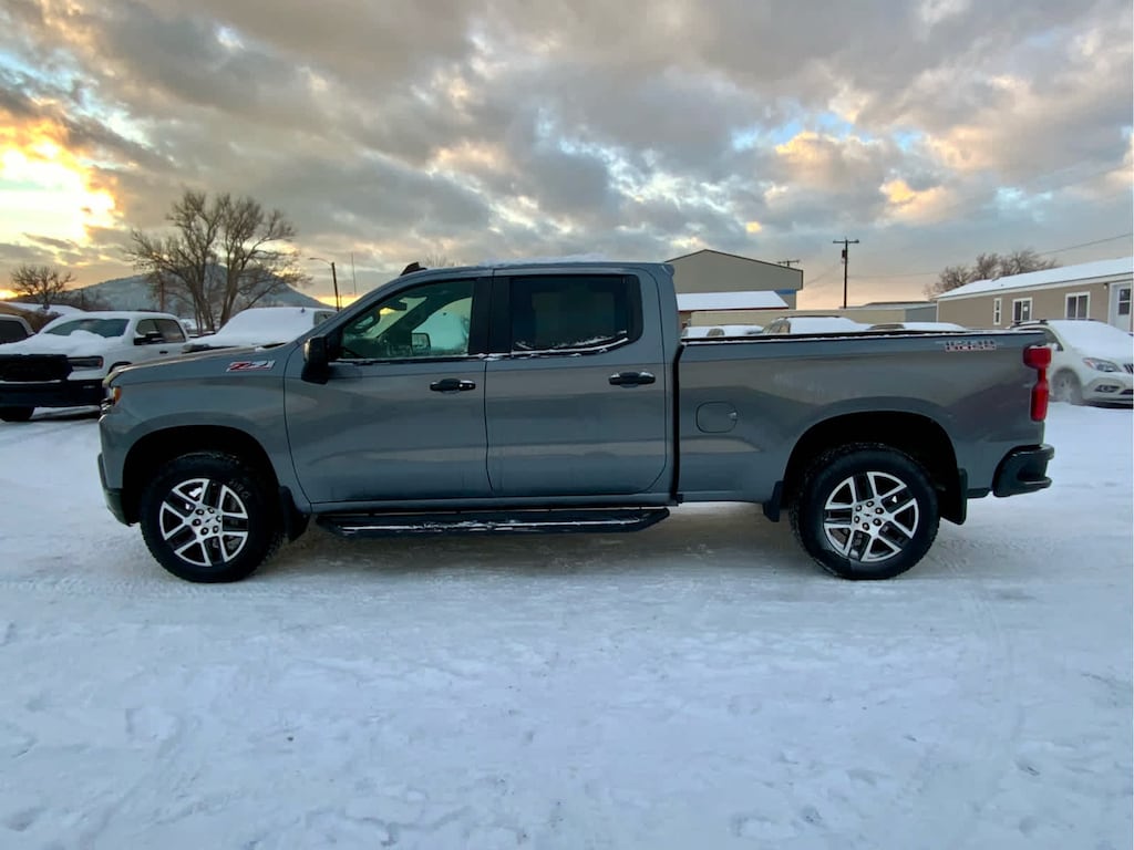 (420 hp [313 kW] @ 5600 rpm, 460 lb-ft of torque [624 Nm] @ 4100 rpm); featuring all-new Dynamic Fuel Management that enables the engine to operate in 17 different patterns between 2 and 8 cylinders, depending on demand, to optimize power delivery and efficiency, includes (A50) bucket seats, (D07) center console, (CJ2) dual-zone automatic climate control, (A2X) 10-way power driver seat including power lumbar, (KA1) heated driver and passenger seats, (KI3) heated steering wheel and (N37) manual tilt-telescoping steering column; Crew Cab models include (R7O) Cloth Rear Seat with Storage Package and includes (SNR) Up-level Rear Seat with Storage Package. includes (UG1) Universal Home Remote, (A48) rear sliding power window, (KI4) 120-volt power outlet, (KC9) 120-volt bed-mounted power outlet, (IOS) Chevrolet Infotainment System with 8" diagonal color touch-screen with (MCR) USB ports, SiriusXM with 360L, (U2L) HD radio and (UVB) HD Rear Vision Camera Includes (UQA) Bose Premium Sound System.), includes (UD5) Front and Rear Park Assist, (UKC) Lane Change Alert with Side Blind Zone Alert and (UFG) Rear Cross Traffic Alert (Includes Perimeter Lighting. with machined face and Grey accent pockets, includes (B1J) wheel house liners and (CGN) Chevytec spray-on bedliner, includes (PZ8) Hitch Guidance with Hitch View, (U1D) Advanced Trailering System and (JL1) trailer brake controller, 8" diagonal HD color touchscreen, AM/FM stereo, Bluetooth® audio streaming for 2 active devices, Apple CarPlay® and Android Auto® capable, voice recognition, in-vehicle apps, cloud connected personalization for select infotainment and vehicle settings. Dealer upgradeable to embedded navigation. Subscription required for enhanced and connected services after trial period. with overdrive and tow/haul mode. Includes Cruise Grade Braking and Powertrain Grade Braking (STD), 60/40 folding bench for Crew Cab models, includes full-length bench seat, seatback storage on left and right side, center fold out armrest with 2 cupholders, full cab width underseat storage, (includes child seat top tether anchor). Chevrolet LT Trail Boss with Satin Steel Metallic exterior and Gideon/Very Dark Atmosphere interior features a 8 Cylinder Engine with 420 HP at 5600 RPM*.