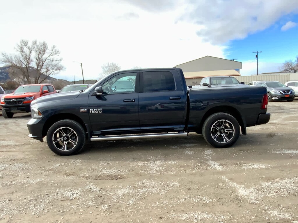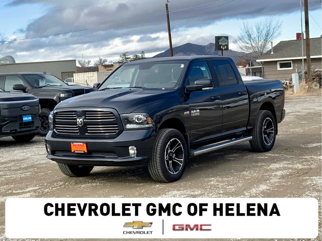 FUEL EFFICIENT 23 MPG Hwy/16 MPG City! Heated Leather Seats, Moonroof, Navigation, Dual Zone A/C, Remote Engine Start, Bluetooth , iPod/MP3 Input, Back-Up Camera, Aluminum Wheels, Satellite Radio, 4-CORNER AIR SUSPENSION READ MORE!======KEY FEATURES INCLUDE: Navigation, Back-Up Camera, Satellite Radio, iPod/MP3 Input, Bluetooth , Aluminum Wheels, Remote Engine Start, Dual Zone A/C. MP3 Player, Privacy Glass, Steering Wheel Controls, Child Safety Locks, Electronic Stability Control. ======OPTION PACKAGES: 4-CORNER AIR SUSPENSION, Power 10-Way Driver & 6-Way Passenger Seats, Ventilated Front Seats, POWER SUNROOF, Keyless GO , Remote Proximity Keyless Entry, Auto High Beam Headlamp Control, Rain Sensitive Windshield Wipers, PARKSENSE FRONT/REAR PARK ASSIST SYSTEM, SINGLE DISC REMOTE CD PLAYER, REAR WINDOW DEFROSTER. Ram Sport with Maximum Steel Metallic Clearcoat exterior and Black interior features a 8 Cylinder Engine with 305 HP at 6400 RPM*. ======EXPERTS ARE SAYING: Edmunds.com explains "Regardless of trim level, the Ram 1500's interior is one of our favorites in the segment. Seat comfort is excellent, especially for long road trips, with soft padding and adequate support in the right places.". Great Gas Mileage: 23 MPG Hwy. ======A GREAT TIME TO BUY: Reduced from $30,799. This 1500 is priced $1,000 below Kelley Blue Book. AutoCheck One Owner ======WHO WE ARE: At Chevrolet GMC of Helena, we are local people helping local people find the car, truck or SUV that meets their needs and at a fair price. In fact, it is our promise that if you find a lower advertised price on a comparable vehicle in the 4 state area we will refund you the difference. Our customers are very important to us and it is our goal that they be 100% satisfied when doing business with us from the sales process to servicing their vehicle and doing right the first time. Price does not include title, license, or dealer doc fees. Price contains all applicable dealer incentives and non-limited factory rebates. You may qualify for additional rebates; see dealer for details.